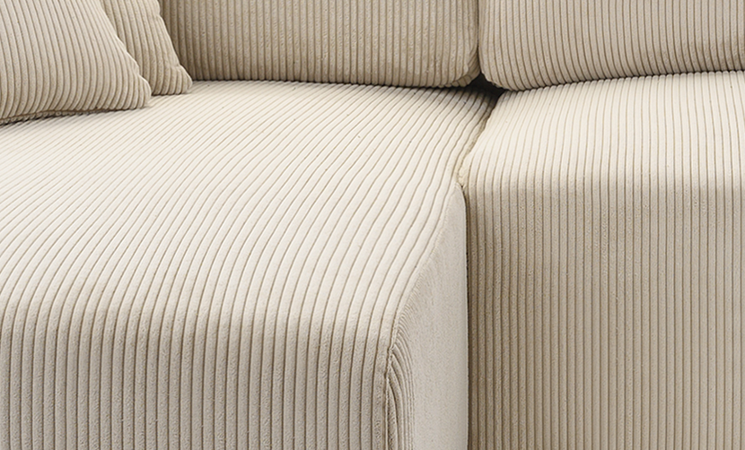 Tkanina POSO to wysokiej jakości sztruks meblowy, który łączy modny wygląd z ponadprzeciętną trwałością. Charakterystyczna, wyraźna prążkowana struktura nadaje meblom elegancki i przytulny charakter, doskonale wpisując się w nowoczesne, skandynawskie oraz loftowe aranżacje wnętrz.